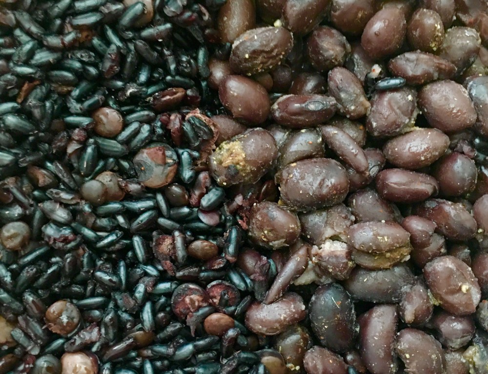 Black beans , lentil and forbidden (Black) rice. This bowel is 28g for beans 9g for rice and 8 for the lentils, that’s a total of 45 grams of protein. I ate half the bowel now and will finish the other half later. Seasoned with kosher salt, tellicherry black pepper , cumin, garlic and chili powder.