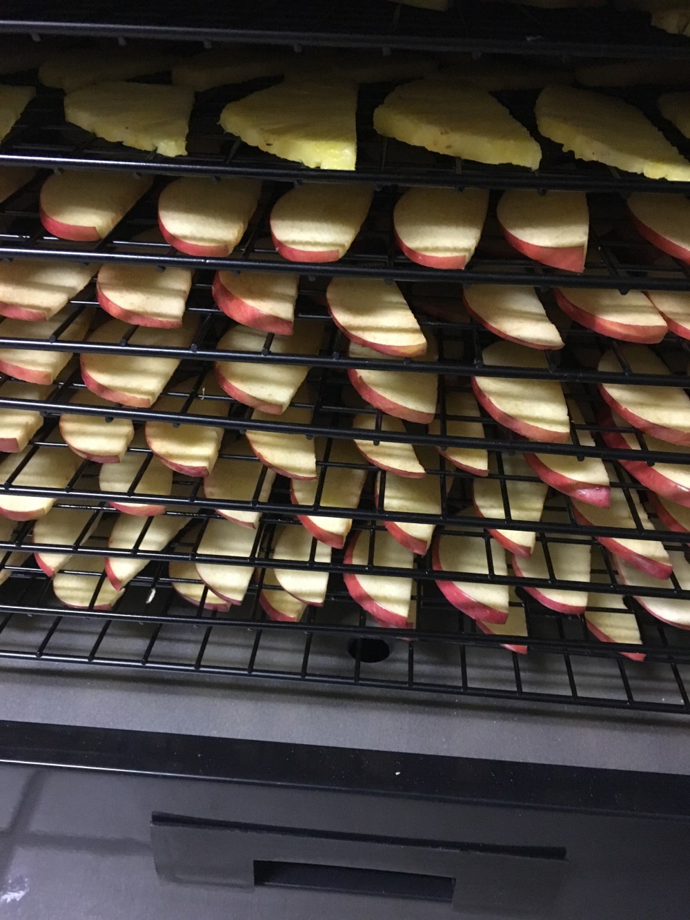 Have access to a serious cabelas dehydrator. This one can do some volume. So when bananas went on the reduced for quick sale for .39 cents a pound I was in. Then we added apples , mangoes, kiwi and pineapple. Key seems to be ripe fruit cut consistently. Great for road trips and cereal. I’ll try to add it to a homemade granola next.
