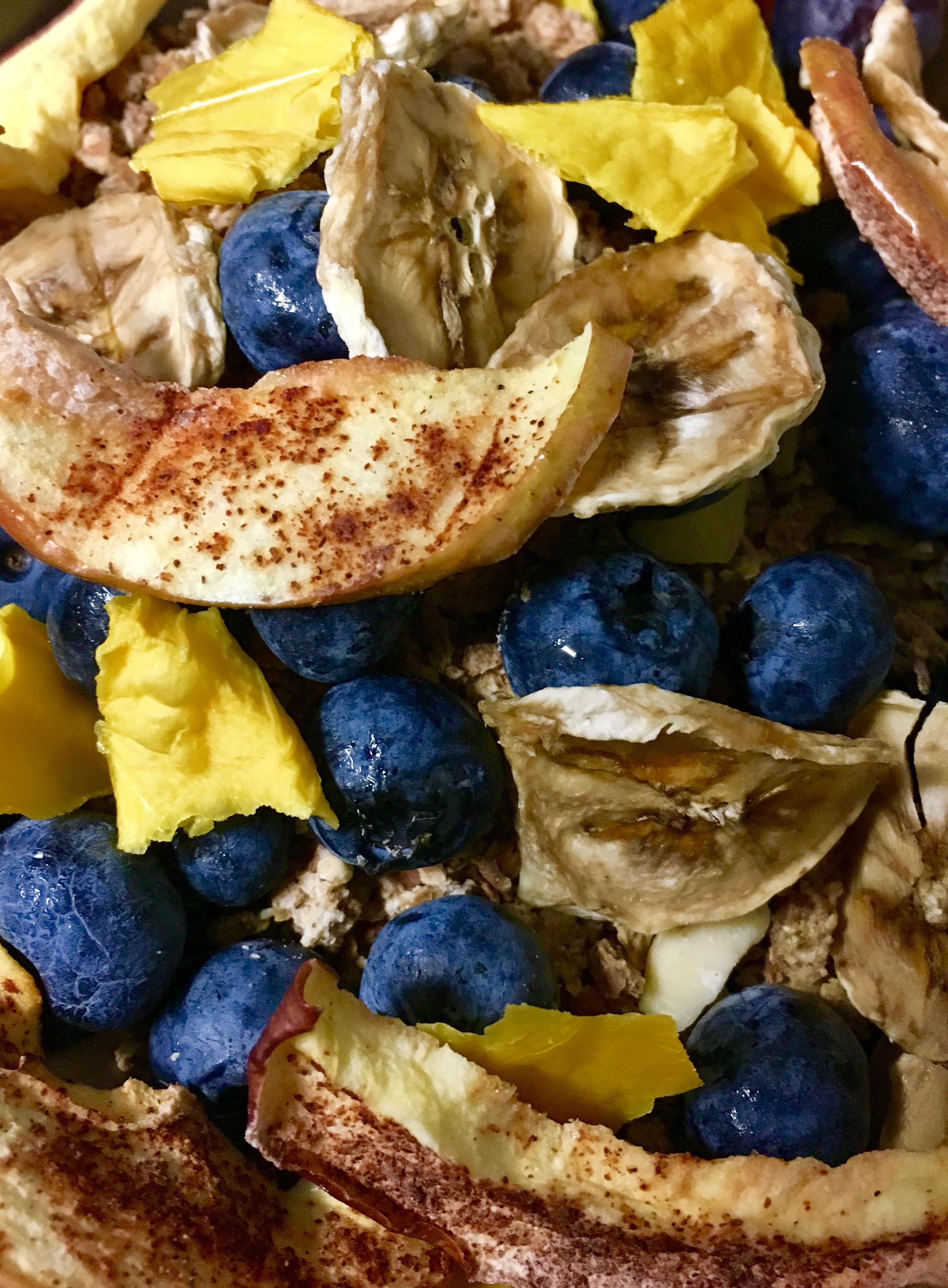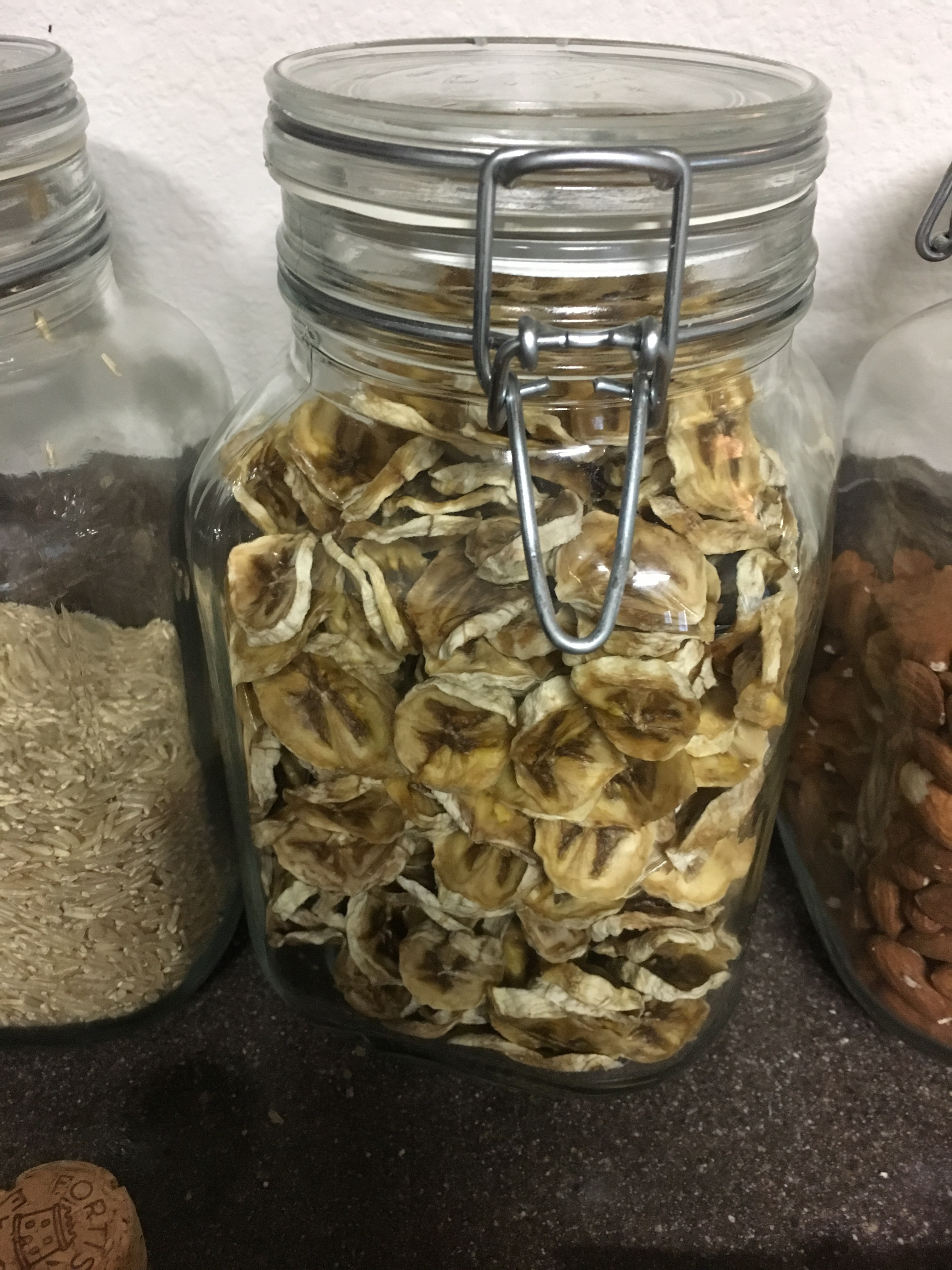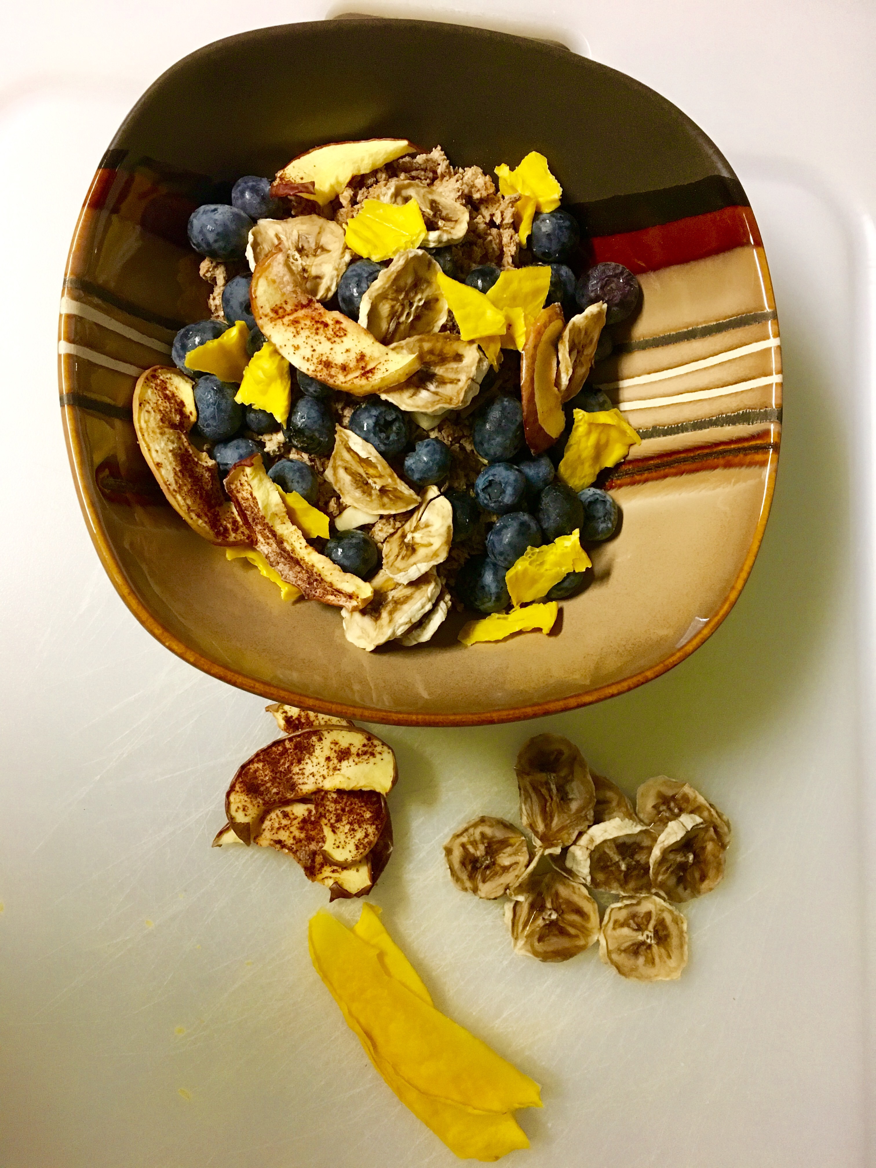 Have access to a serious cabelas dehydrator. This one can do some volume. So when bananas went on the reduced for quick sale for .39 cents a pound I was in. Then we added apples , mangoes, kiwi and pineapple. Key seems to be ripe fruit cut consistently. Great for road trips and cereal. I’ll try to add it to a homemade granola next.